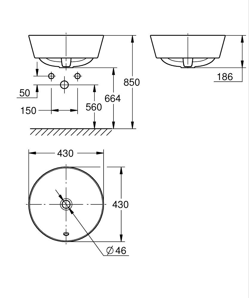 Eurocosmo Vessel basin round Product Number 100987SH00 EAN 4005176950421 Colour2 alpine white Download specs with overflow dimensions: 430 x 430 mm height: 186 mm Technical Product Information Dimensional Drawing Dimensional Drawing CAD Data 2D DWG-Data 2D DXF-Data 3D DXF-Data